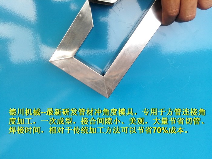 德川機(jī)械--最新研發(fā)管材沖角度模具,專(zhuān)用于方管連接角度加工,一次成型,接合間隙小、美觀,大量節(jié)省切管、焊接時(shí)間,相對(duì)于傳統(tǒng)加工方法可以節(jié)省70%成本。...