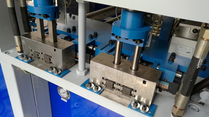 6、裝模、換模簡單,機臺上有定位裝置,模具對準定位裝置后鎖緊螺絲即可;