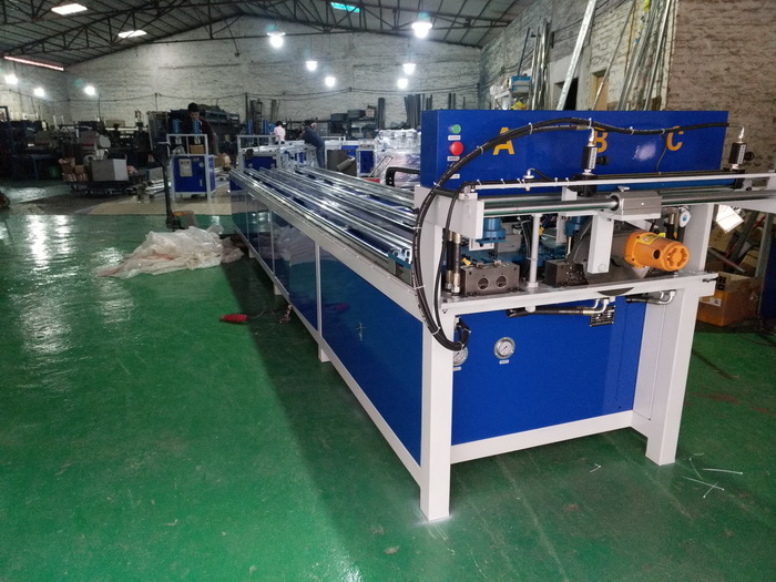 三工位數(shù)控全自動(dòng)沖孔、切料機(jī),三工位同時(shí)工作,一次沖6支管,每個(gè)油缸可單獨(dú)控制沖全孔、半孔,大大提高不銹鋼防盜網(wǎng)沖孔效率,行業(yè)首創(chuàng),專利產(chǎn)品...
