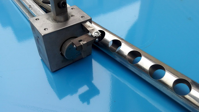 6、模具自帶刻度尺定位桿,沖孔不需要畫線,可以任意調節(jié)孔距,任意調節(jié)沖單面孔或沖穿孔,可沖圓管、方管;